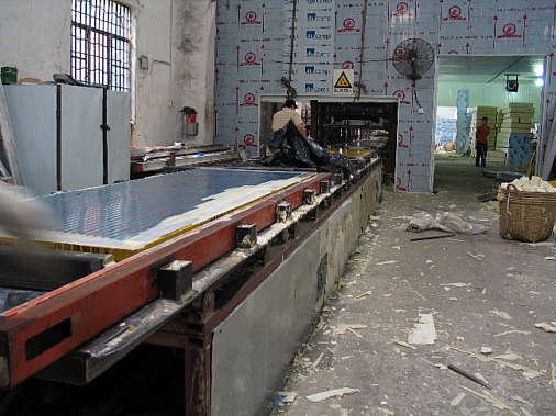 Foam :The steel plate which takes shape puts to the high-pressured mold inbecomes spongy