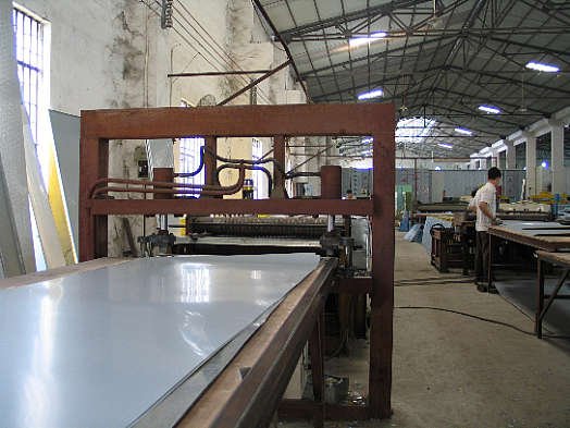cutting :Through sticks the protection cellophane, cuts out, processesthe specification the steel plate which prearranges