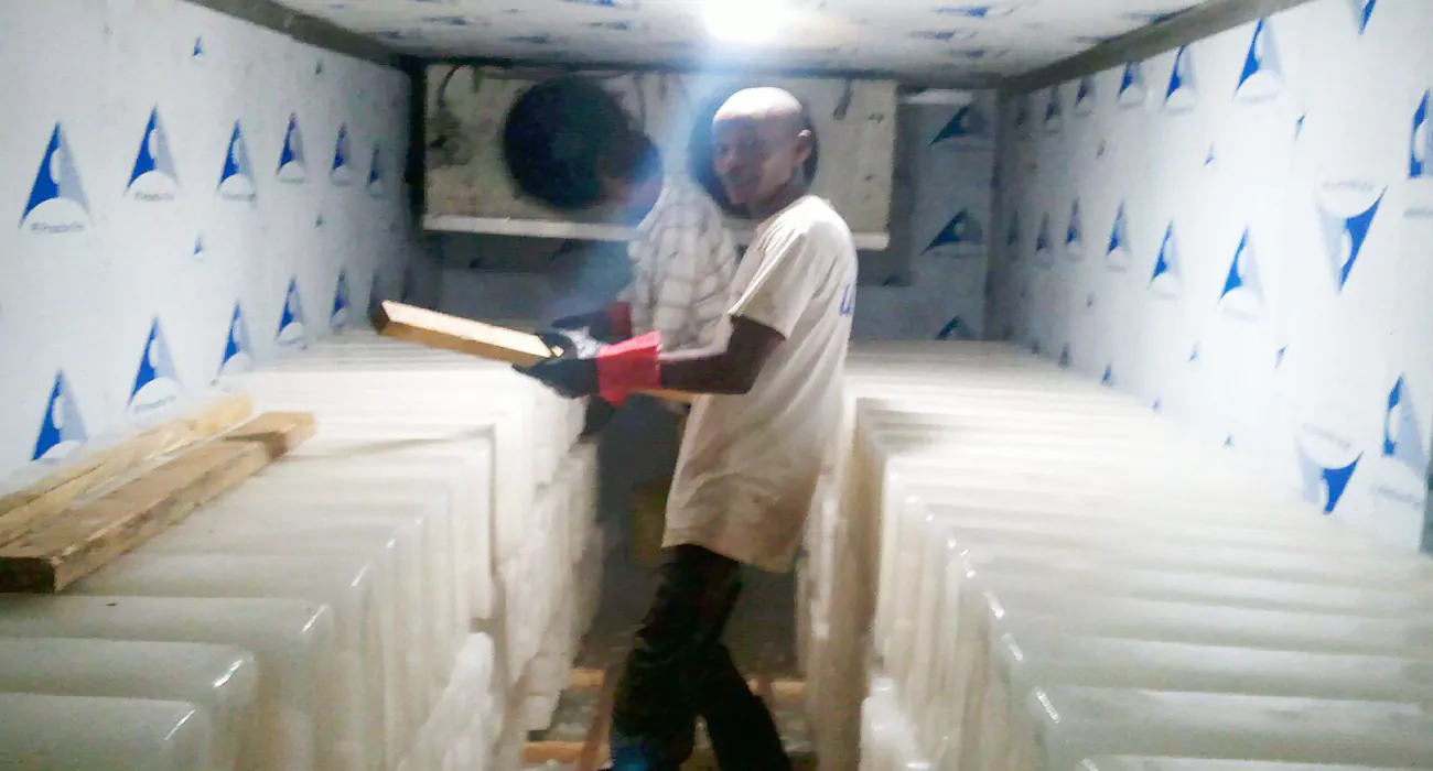 An ice block cold room is a type of cold storage designed to store ice blocks at a temperature below freezing point